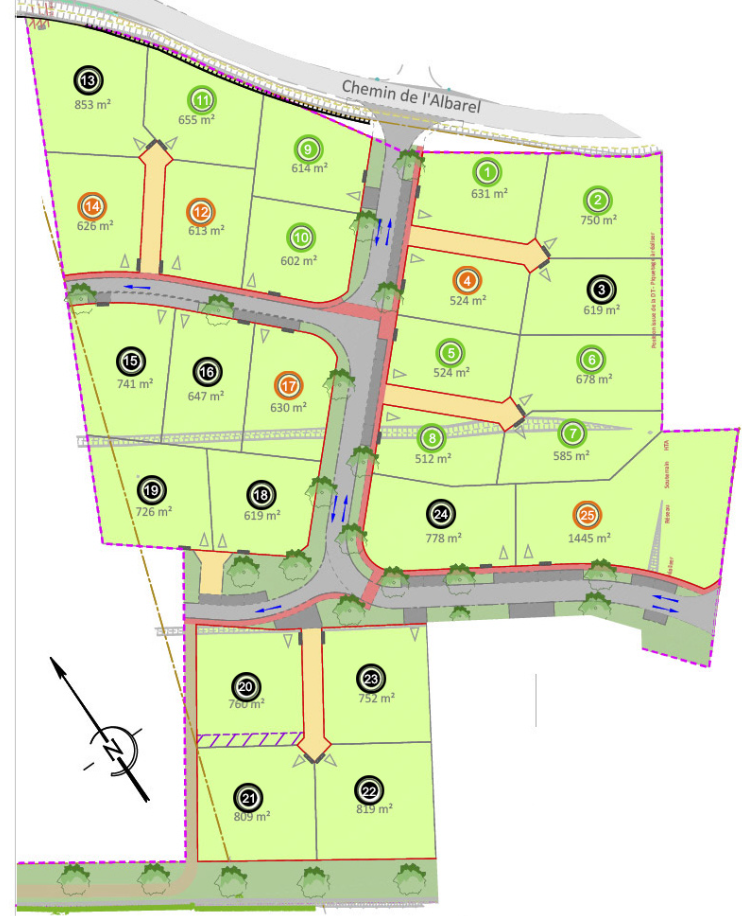 La superficie des parcelles encore disponibles, vont de 512 à 750 mètres carrés.